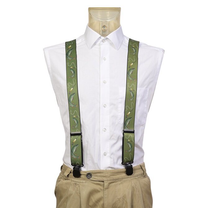 Tyto rybářské kšandy jsou nezbytným doplňkem pro každého milovníka přírody. Jejich design s motivy ryb a řeky přináší do vašeho šatníku kousek přírodní elegance.