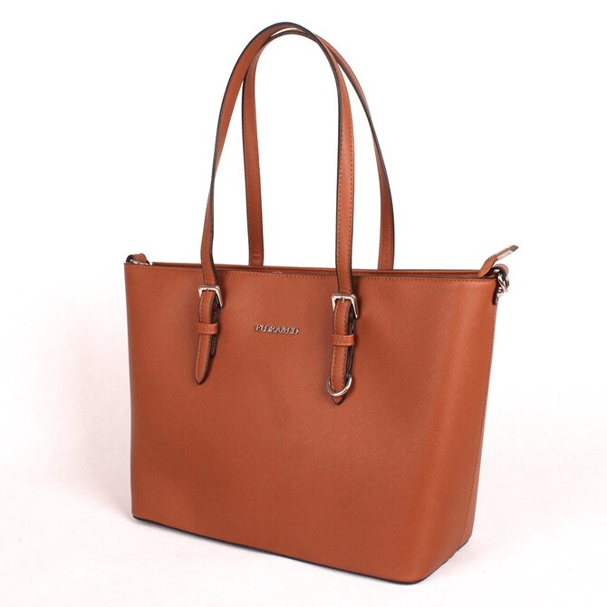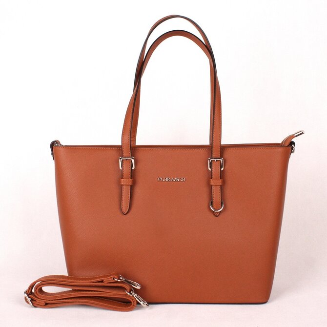 Hnědá velká elegantní pevná kabelka na rameno FLORA&CO F9126 hnědá, syntetická kůže