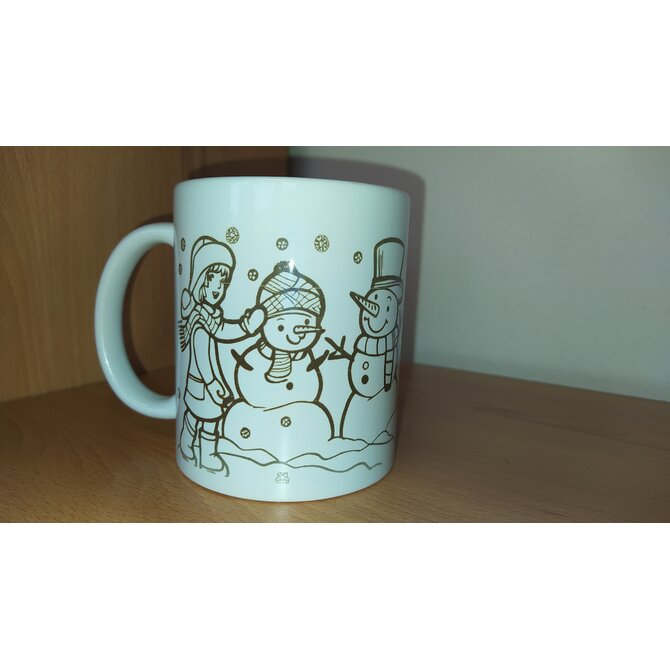 Hrnek s potiskem k vybarvení - domalování pomocí fixů na keramiku.