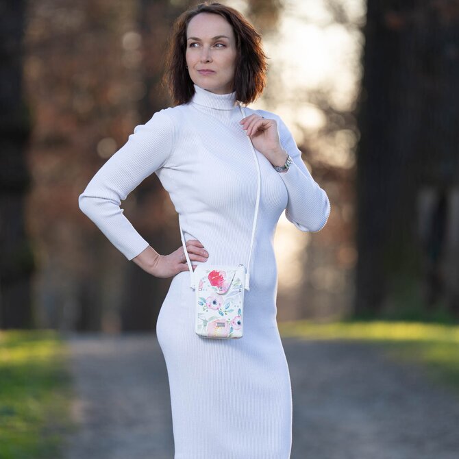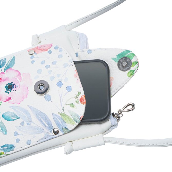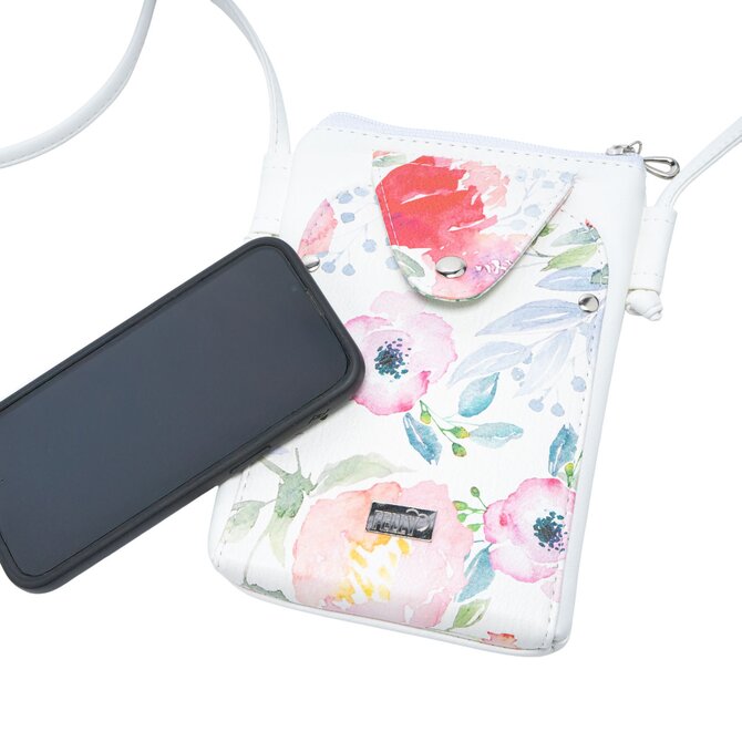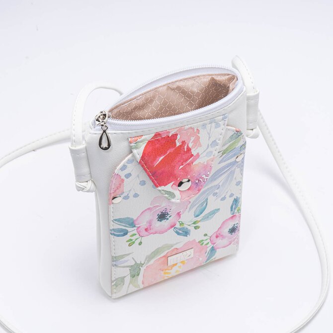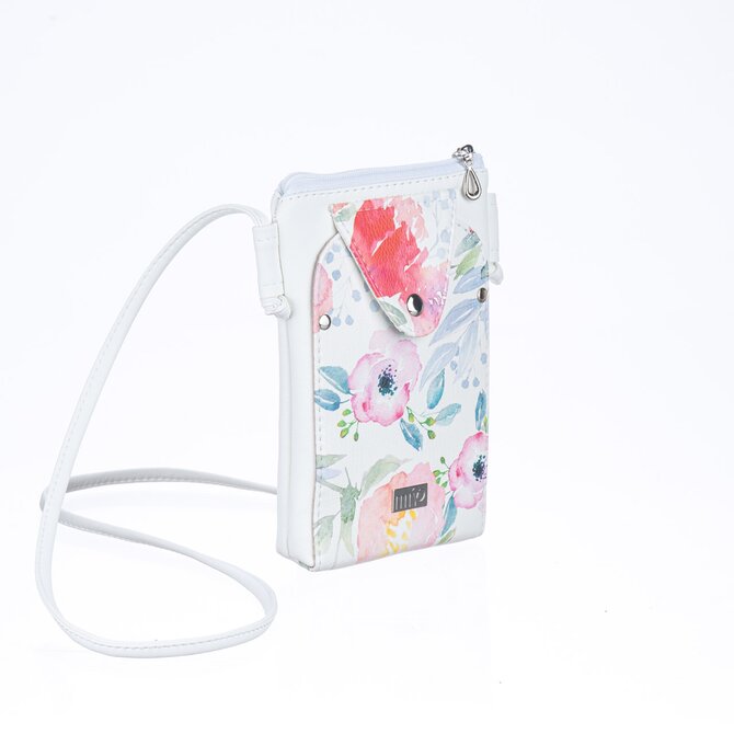 Kabelka ma mobil MOLY bílá s akvarelovými letními květy Bílá, Small