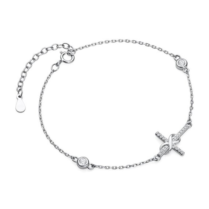 Klenoty Amber Luxusní stříbrný náramek křížek nekonečno se zirkony stříbrná , stříbro Ag 925/1000