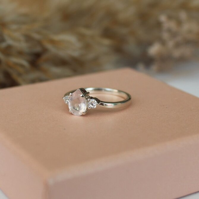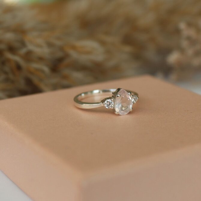 Rozměry kamenů: 7 x 5 mm (růženín) / 2,5 mm (bílé topazy).