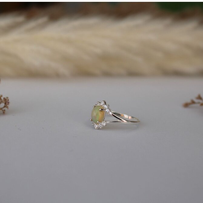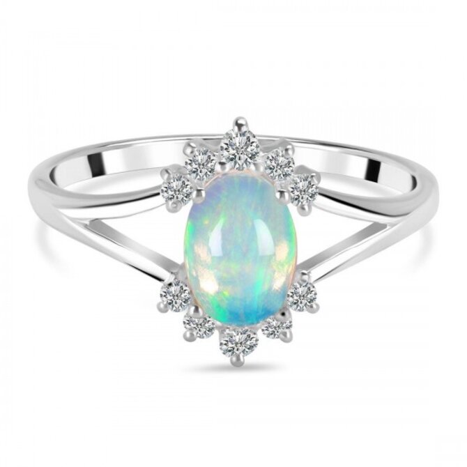 Klenoty Amber Luxusní stříbrný prsten s opálem a topazy Romance Velikost: 57 duhová, 57, stříbro Ag 925/1000