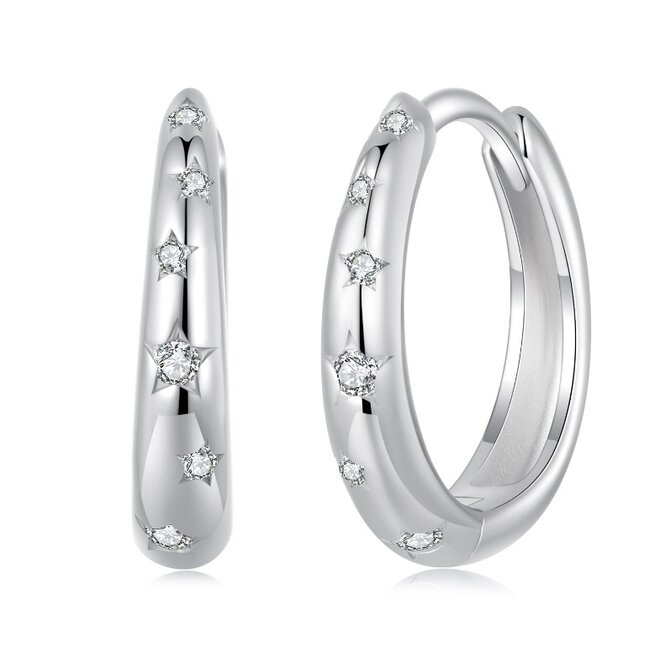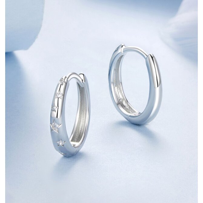 Klenoty Amber Stříbrné náušnice hvězdné kroužky pozlacené bílým zlatem bílá, stříbro Ag 925/1000