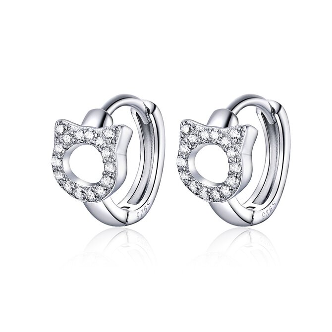 Klenoty Amber Stříbrné náušnice kroužky kočka bílá, stříbro Ag 925/1000