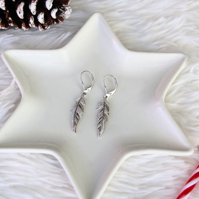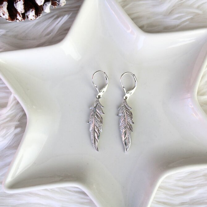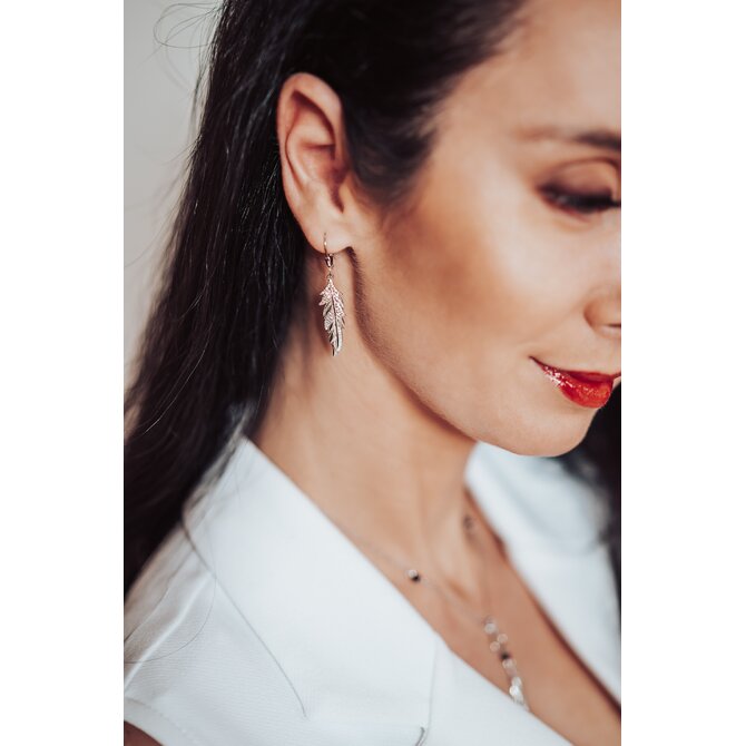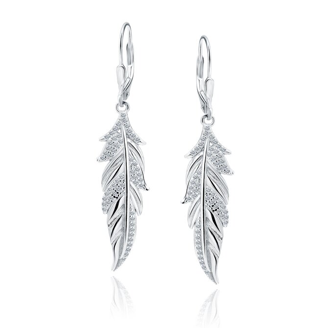 Klenoty Amber Stříbrné náušnice s bílými zirkony - pírko stříbrná , stříbro Ag 925/1000