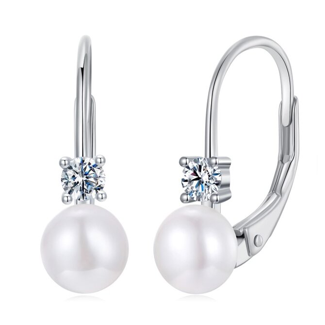 Klenoty Amber Stříbrné náušnice s moissanitem Perla - stříbro 925 pozlacené 18K bílé zlato bílá, stříbro Ag 925/1000
