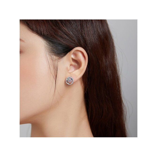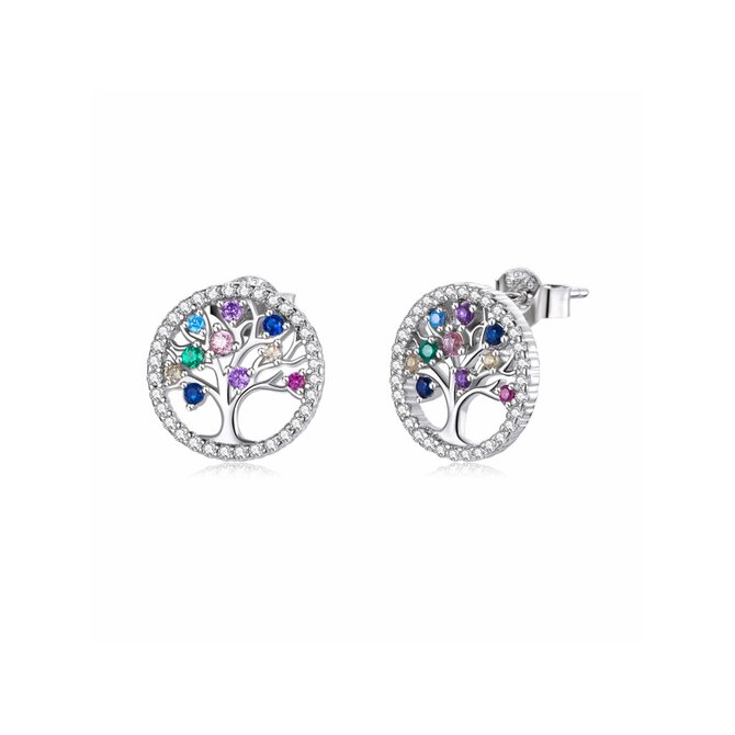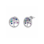 Klenoty Amber Stříbrné náušnice strom života s barevnými zirkony duhová, stříbro Ag 925/1000