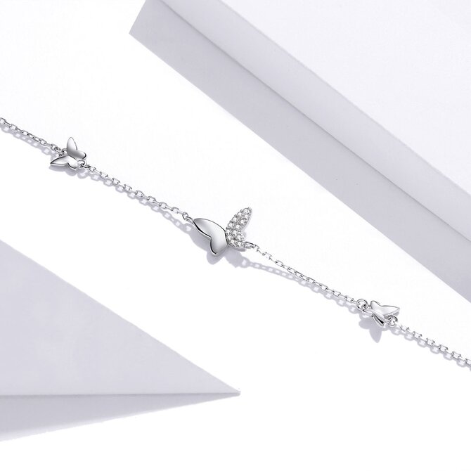 Klenoty Amber Stříbrný náramek motýlci bílá, stříbro Ag 925/1000