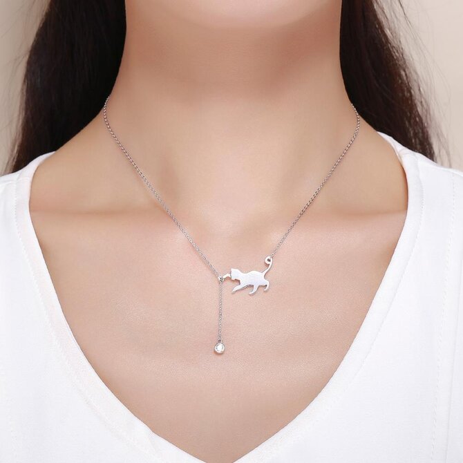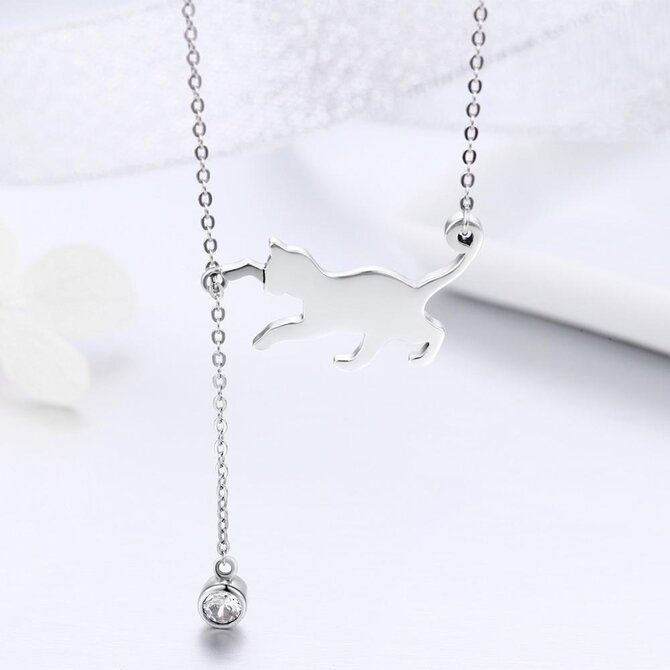 Klenoty Amber Stříbrný řetízek hrající si kočka stříbrná , stříbro Ag 925/1000
