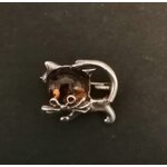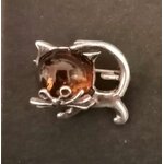 Kočka - brož s jantarem - stříbrná brož