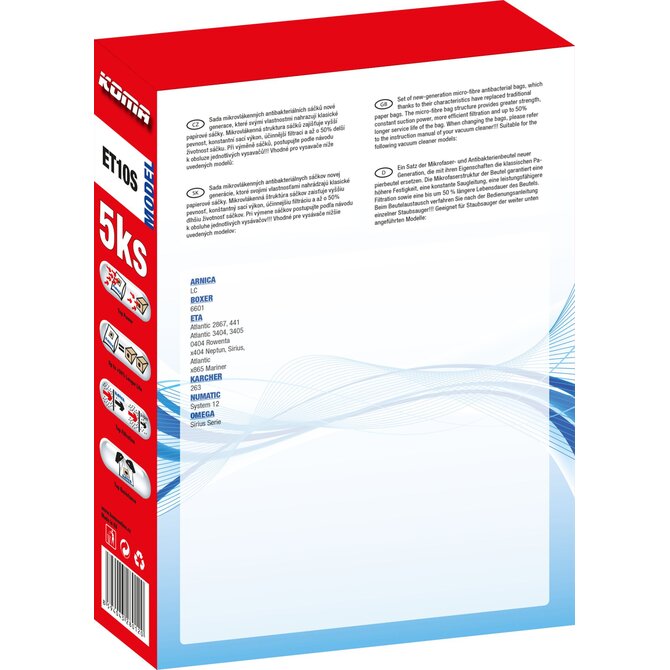 Koma ET10S - Sáčky do vysavače ETA Neptun 1404, 3404, Rowenta 0404 textilní, 5ks v balení