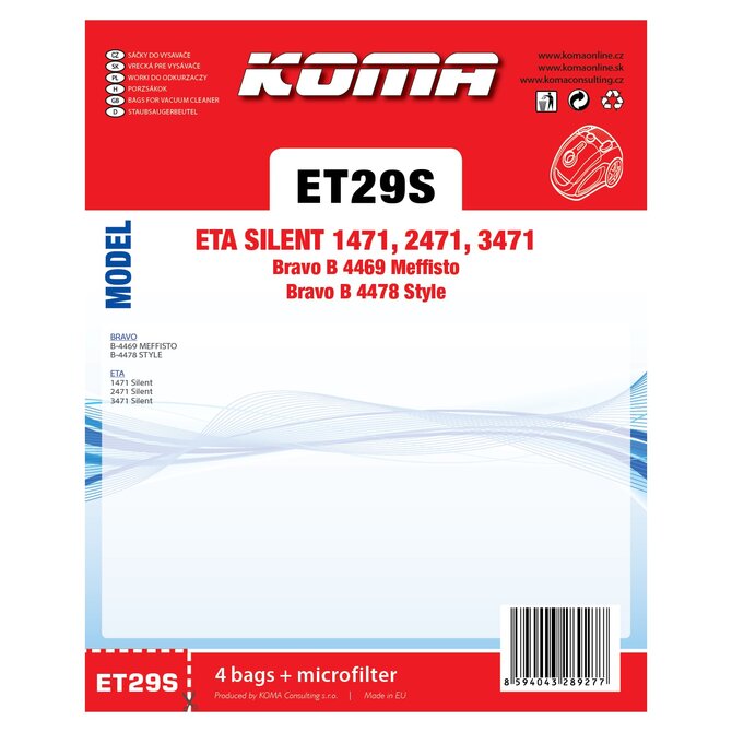 KOMA ET29S - Sada 12 ks sáčků do vysavače ETA Silent 1471, 2471, 3471