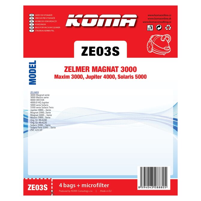 KOMA ZE03S - Sada 12 ks sáčků do vysavače Zelmer Magnat 3000, Jupiter, Solaris