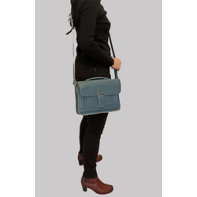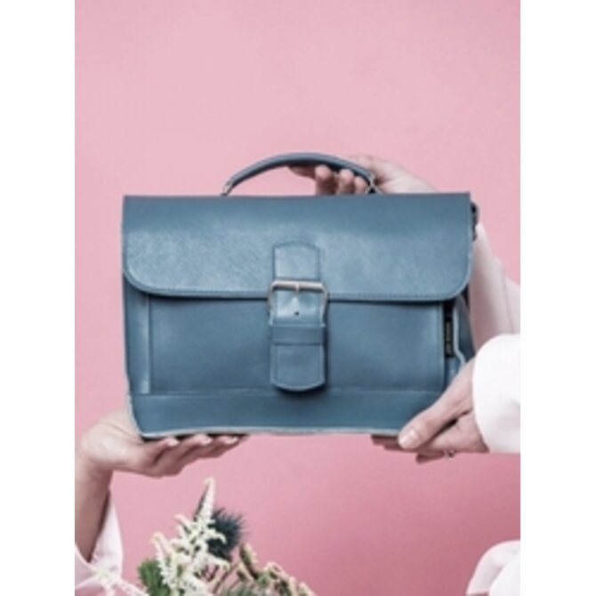 Kožená kabelka OLY - modrošedá tmavě zelená, kůže