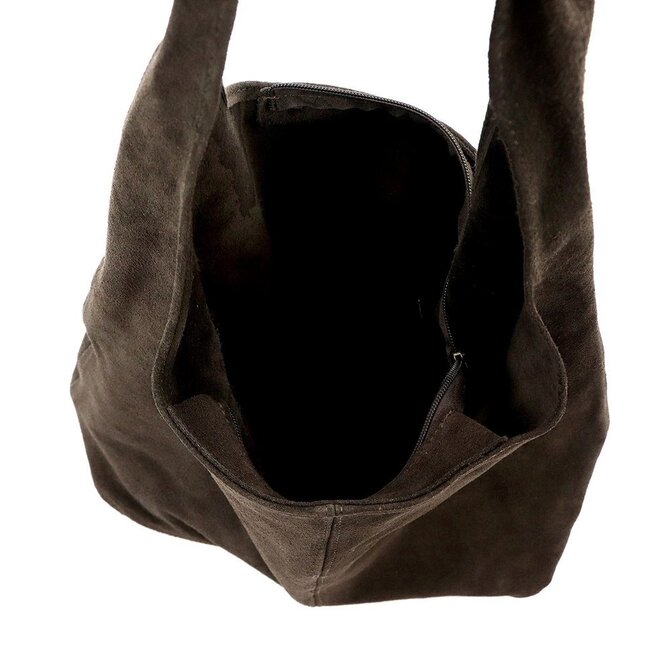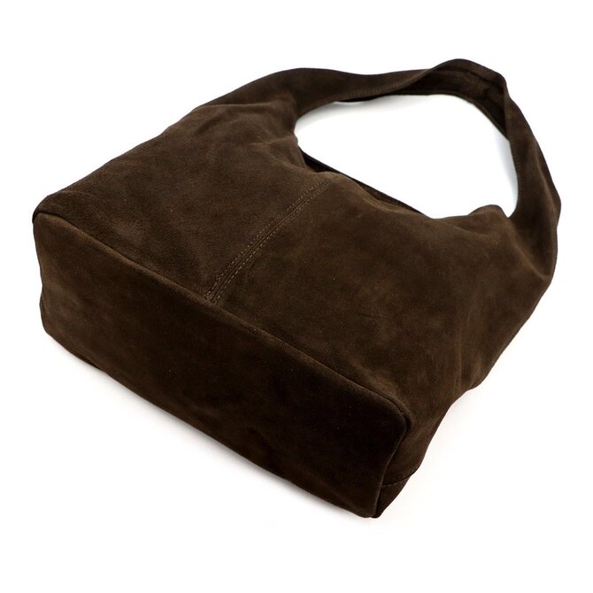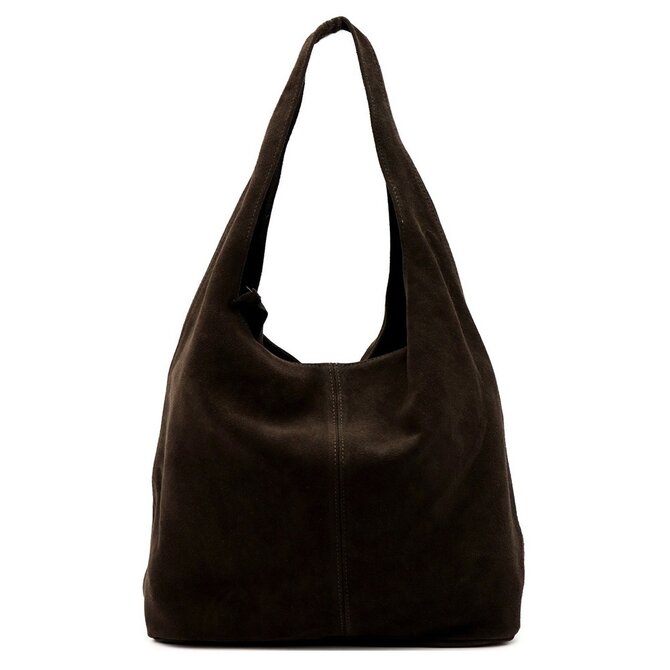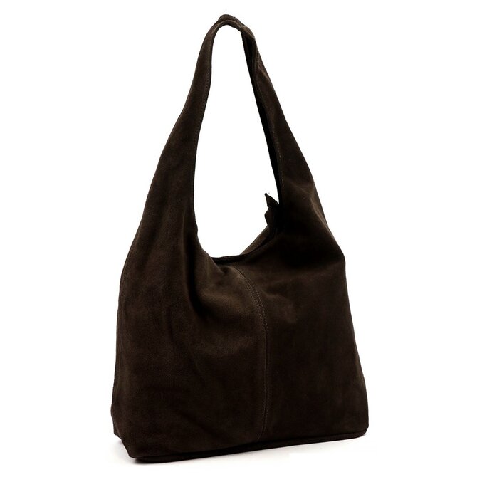 Kožená semišová tmavěhnědá kabelka na rameno Luka no. 68 tmavěhnědá, kůže