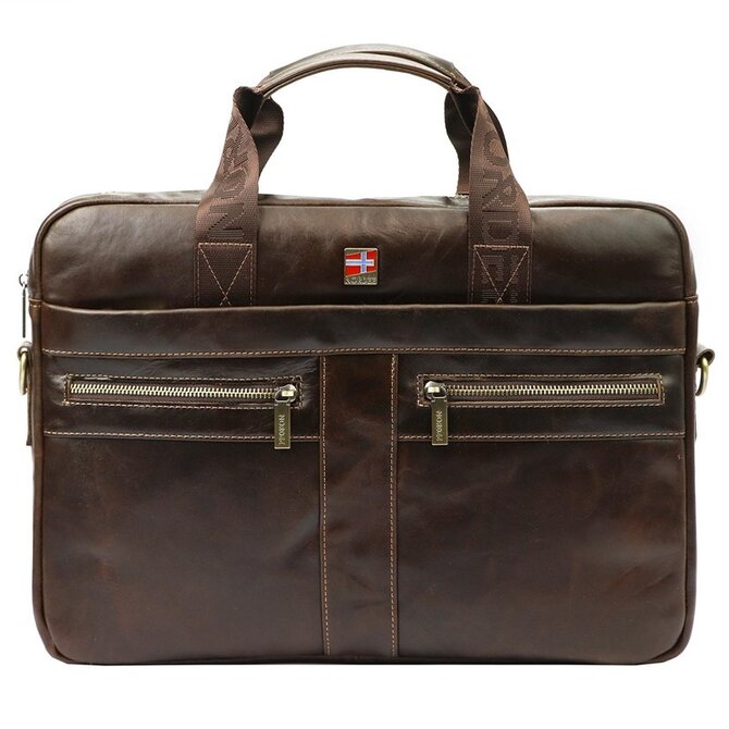 Kožená tmavěhnědá business taška (aktovka) Nordee S134B na notebook tmavěhnědá, kůže