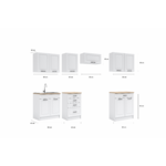 - Výška spodních skříněk: 86 cm (2,8 cm pracovní deska / 10 cm sokl)