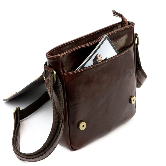 Kvalitní kožená hladká tmavěhnědá crossbody taška Florence no. 69 tmavěhnědá, kůže