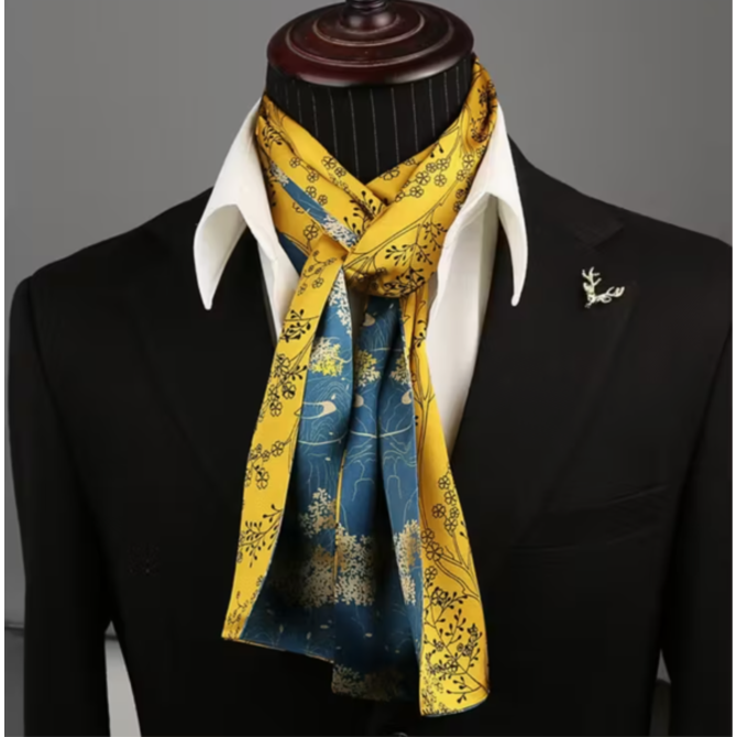 Luxusní pánská šála Amandi Zlatá, 100% silk
