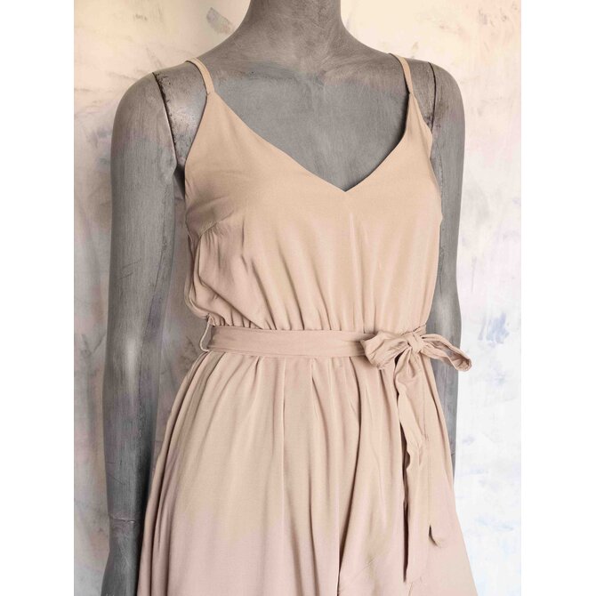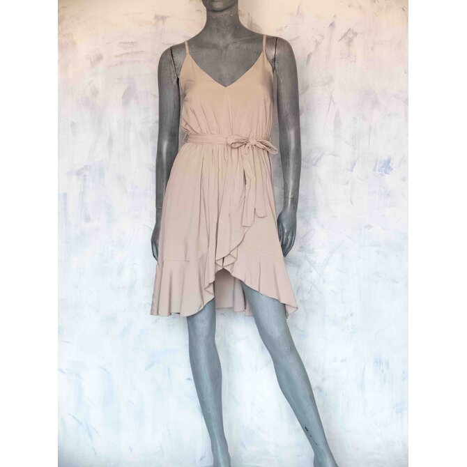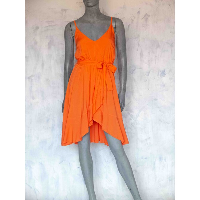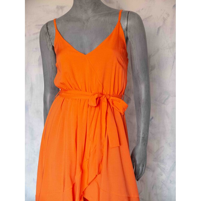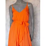 Příjemné, lehké šaty s tenkými nastavitelnými ramínky, rozparkem a volánky.