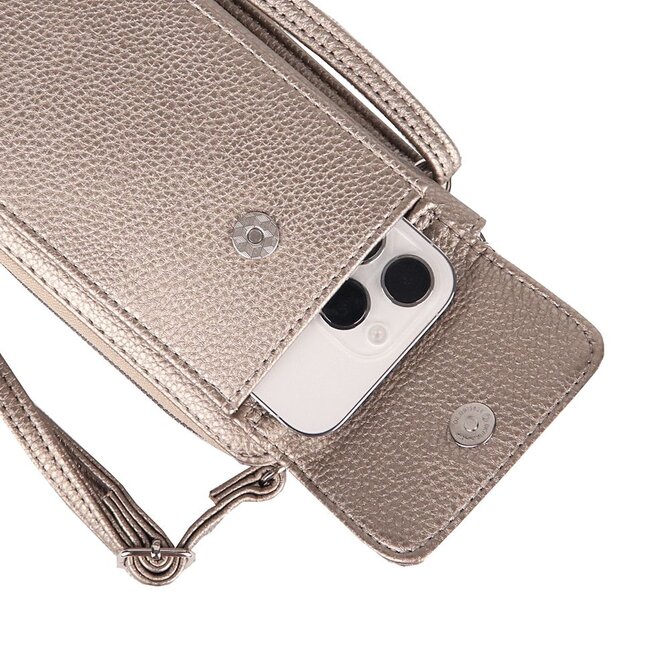 Malá antická zlatá crossbody kabelka (pouzdro na mobil a peněženka) Flora no. 60 antická zlatá, koženka, polyuretan