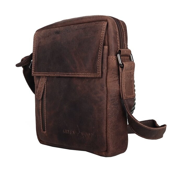 Malá hnědá (khaki) kožená crossbody taška GreenWood no. 116209 hnědá, kůže