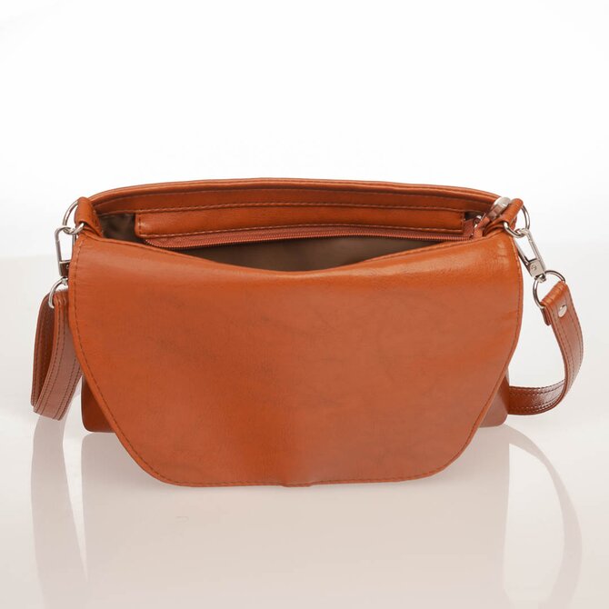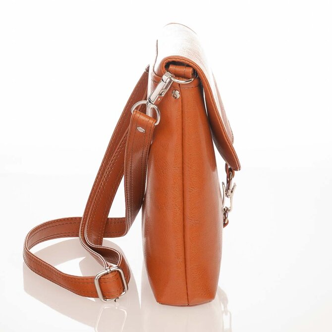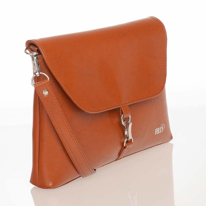 Malá, klopová, crossbody kabelka LENA lesklá koňaková Hnědá, Small