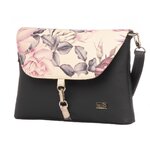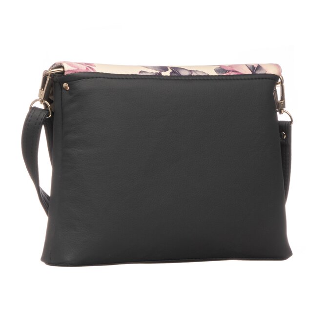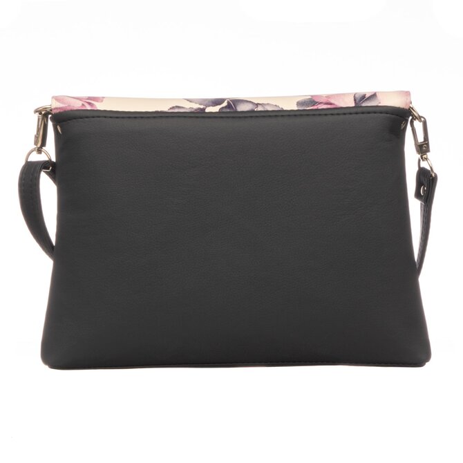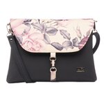 Malá, klopová, crossbody kabelka LENA modrá s motivem růží Potisk, Small