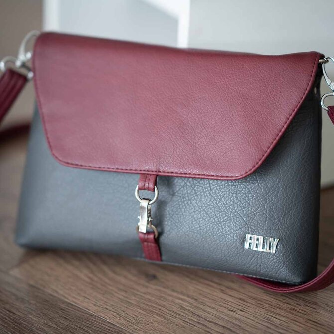 Malá, klopová, crossbody kabelka LENA tmavě šedá + vínová Šedá, Small