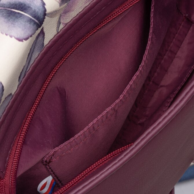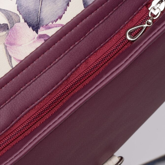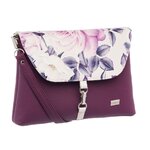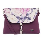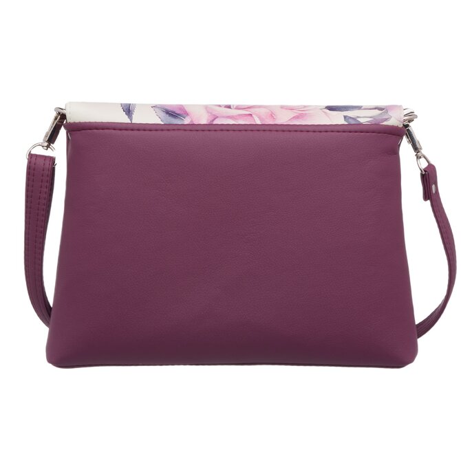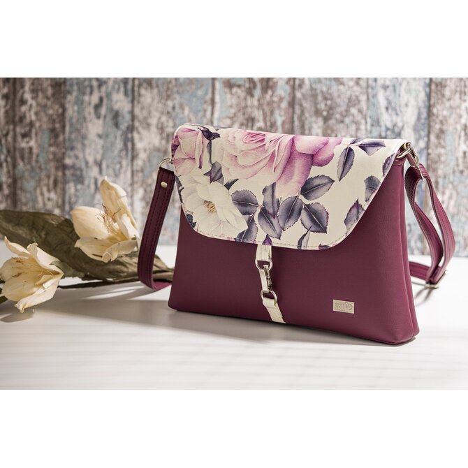Malá, klopová, crossbody kabelka LENA vínová s motivem růže Potisk, Small