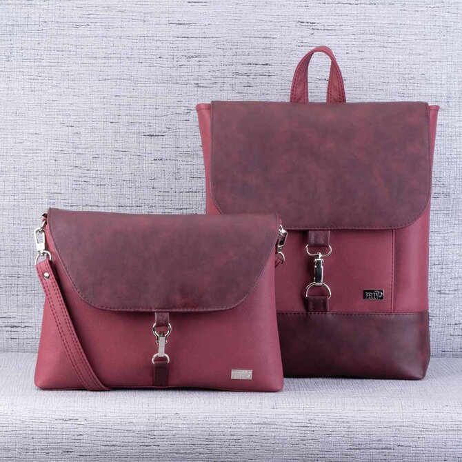 Malá, klopová, crossbody kabelka LENA vínová sv + tmavě Šedá, Small