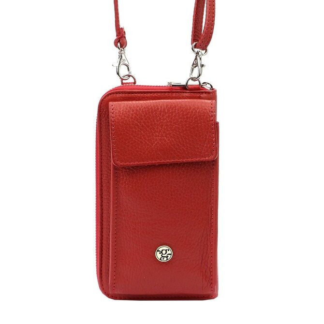 Malá kožená červená crossbody kabelka (pouzdro na mobil a peněženka) Gregorio 07 - gold červená, kůže