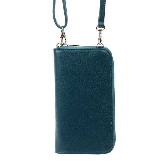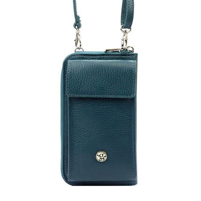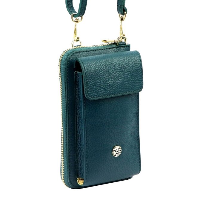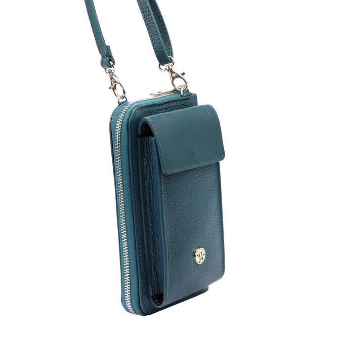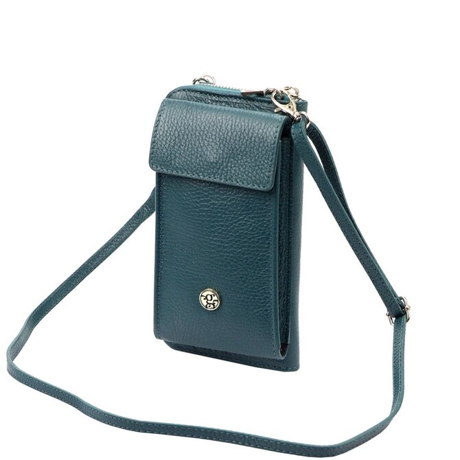 Malá kožená tyrkysová crossbody kabelka (pouzdro na mobil a peněženka) Gregorio 07 - gold tyrkysová, kůže