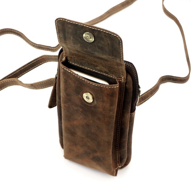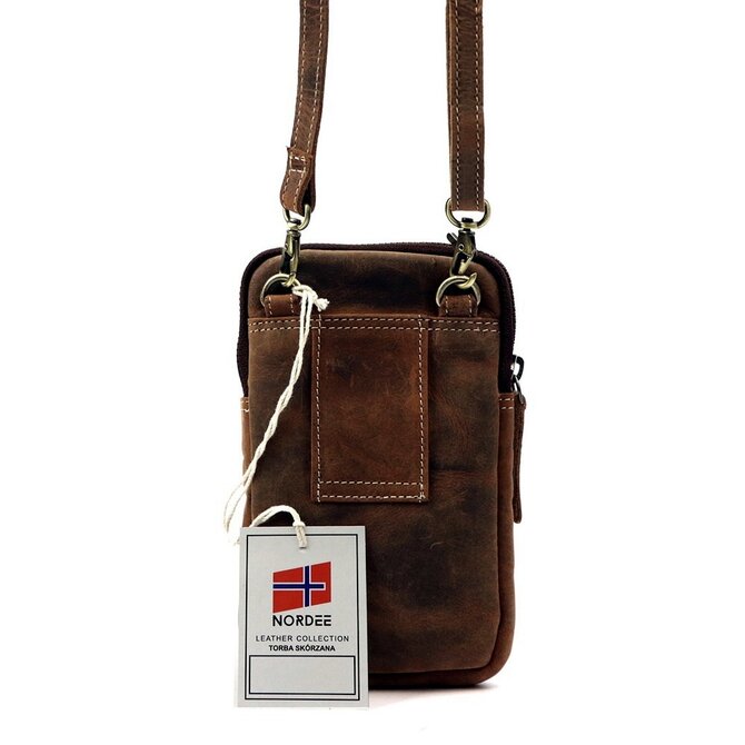 Malá pánská kožená hnědá crossbody taštička (pouzdro na mobil) Nordee hnědá, kůže