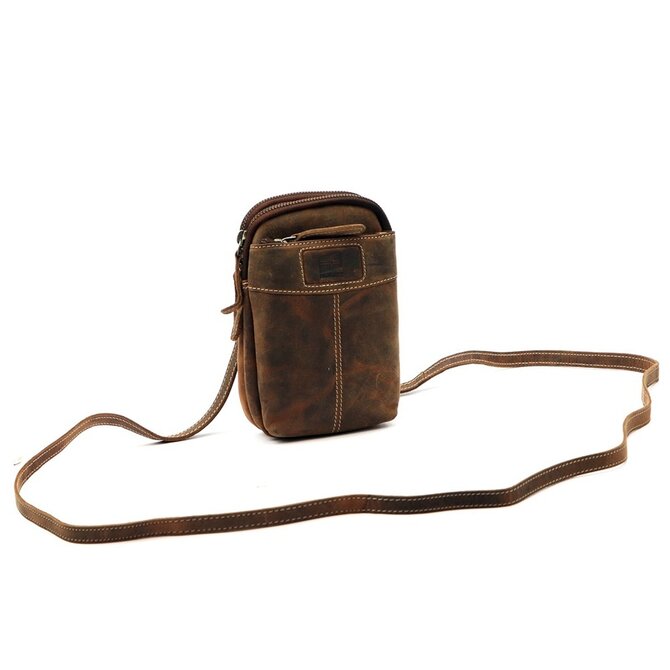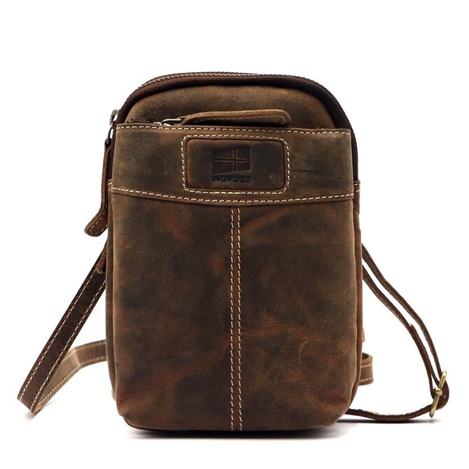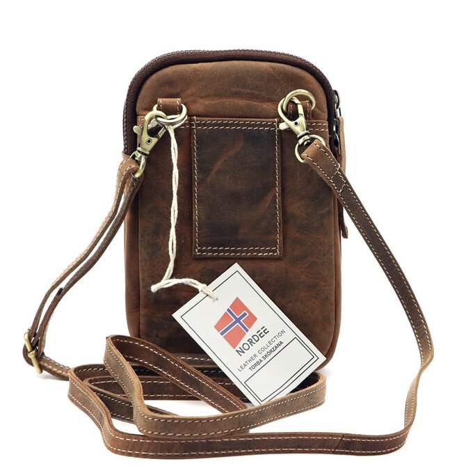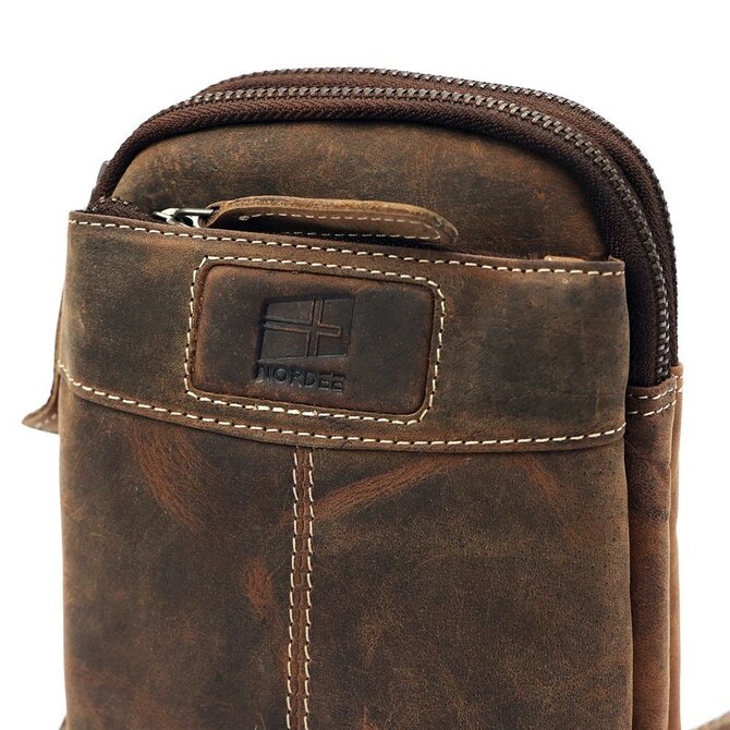 Malá pánská kožená hnědá tříoddílová crossbody taštička (pouzdro na mobil) Nordee no. 04 hnědá, kůže