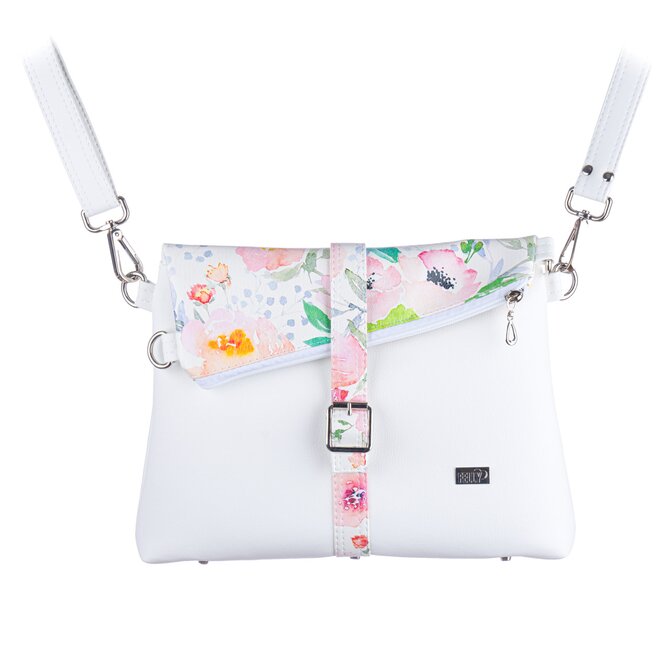 Malá překlápěcí kabelka JELA mini akvarelové letní květy s bílou Krémová, Small