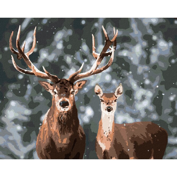 Malování podle čísel - UŠLECHTILÝ JELEN A LAŇ V ZASNĚŽENÉM LESE