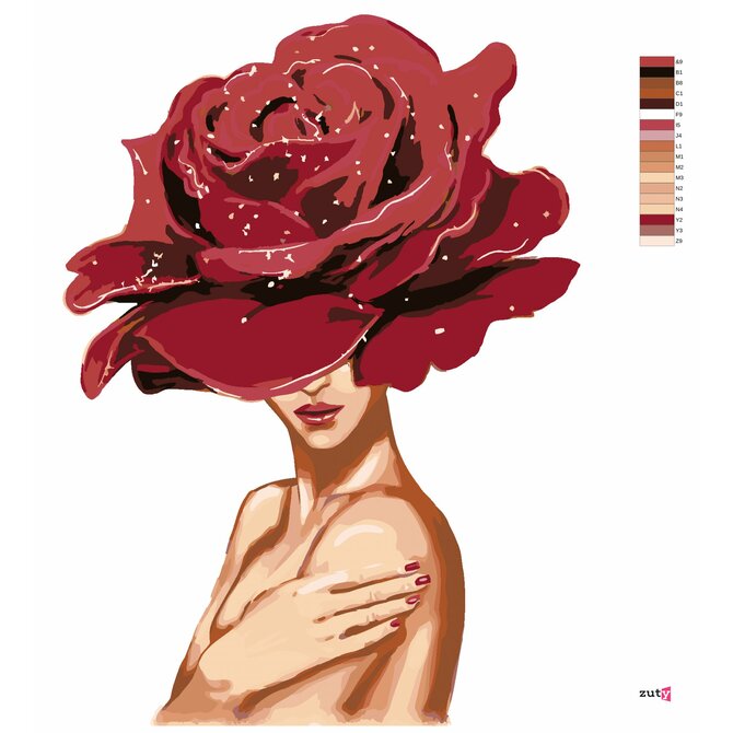 Malování podle čísel - ŽENA S RŮŽÍ NA HLAVĚ