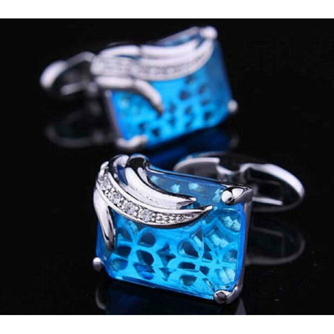 Manžetové knoflíčky modrý krystal Modrá, Ocel