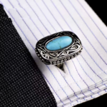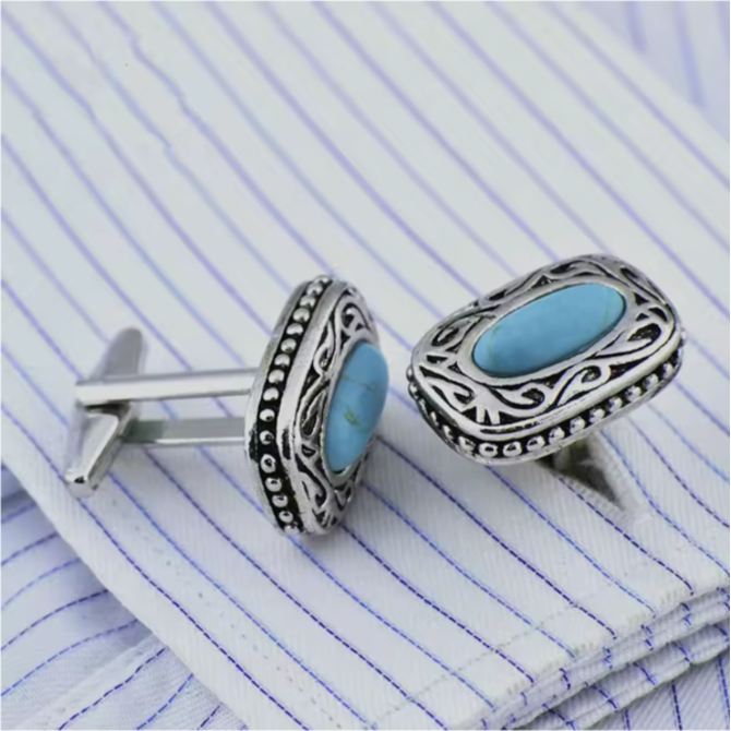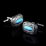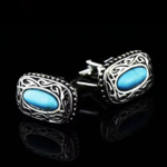 Manžetové knoflíčky s unikátním spletencem Tyrkysová, Ocel slitina