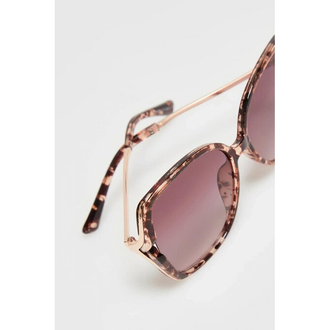 65% MĚĎ, 20% POLYKARBONÁT, 10% AKRYL, 5% SLITINA ZINKU Dámské brýle v béžové barvě s módním zvířecím vzorem. Vyrobeno z odolného plastu s kovovými prvky. Stínované čočky dodávají styl a eleganci.