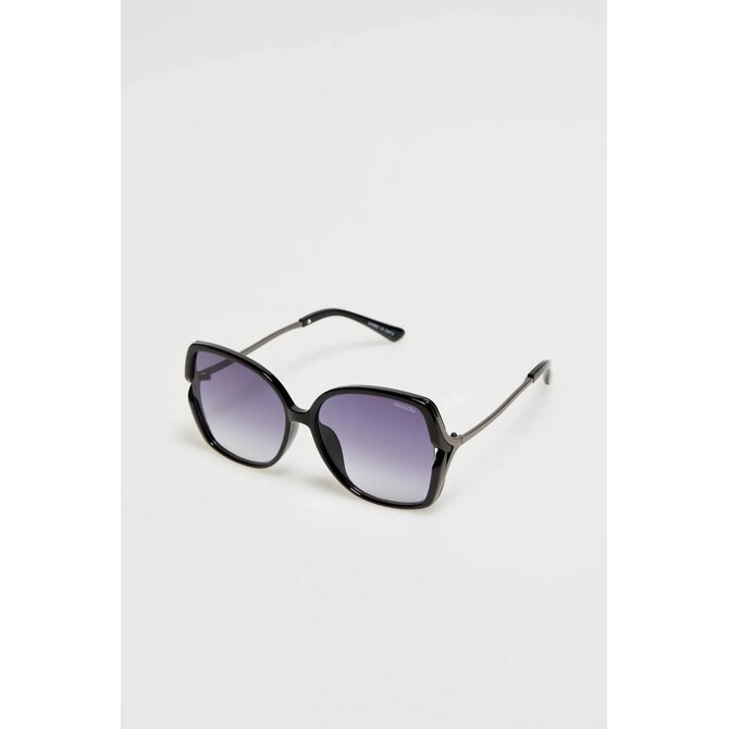 65% MĚĎ, 20% POLYKARBONÁT, 10% AKRYL, 5% SLITINA ZINKU Dámské brýle v černé barvě. Vyrobeno z plastu, zdobeno kovovými prvky. Stínované čočky dodávají styl a charakter. Ideální pro slunečné letní dny.
