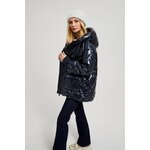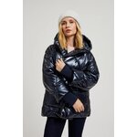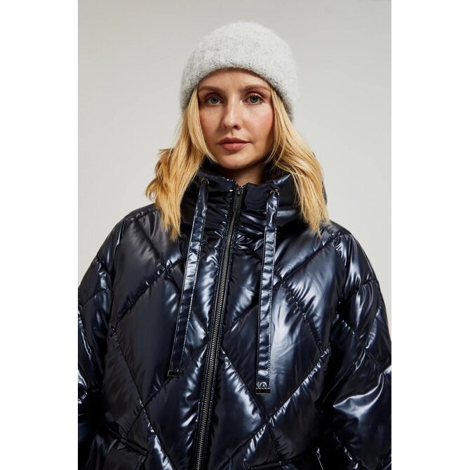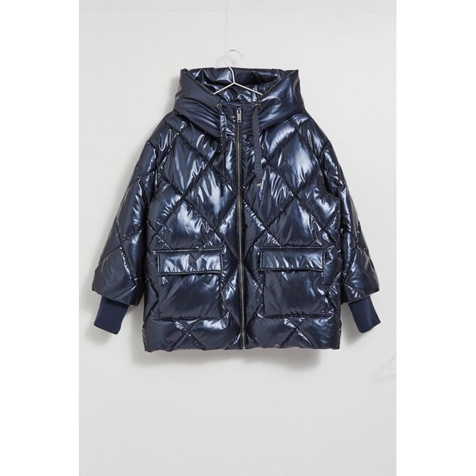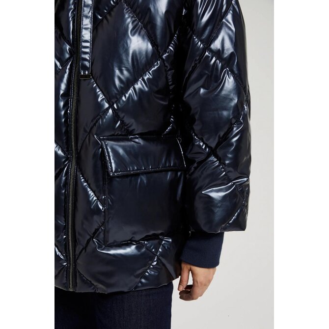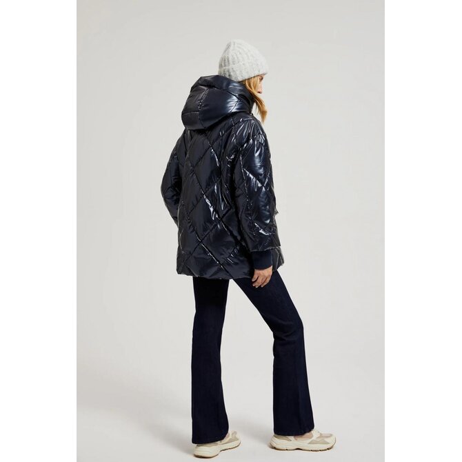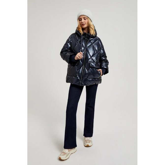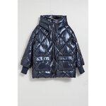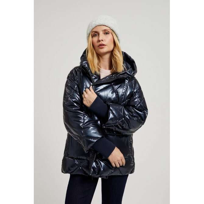 Prošívaná metalická bunda s kapucí, tmavě modrá