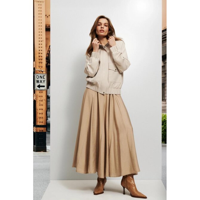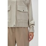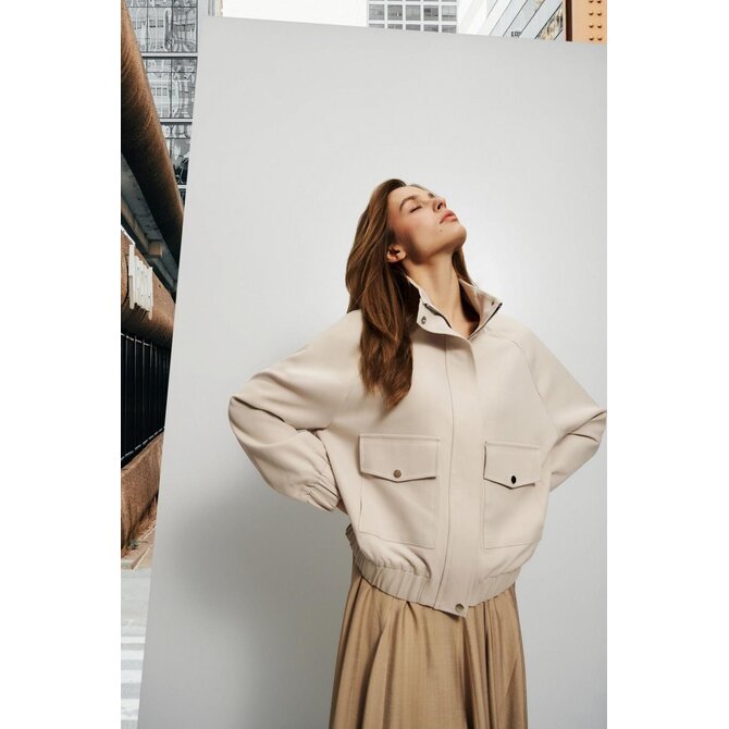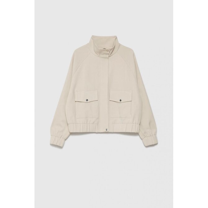 VNĚJŠÍ VRSTVA: 82% POLYESTER, 15% VISKÓZA, 3% ELASTAN PLÁŠŤ NA POLŠTÁŘ: 100% POLYESTER Dámská bunda v béžové barvě je perfektní volbou pro každou ženu. Hladký polyesterový materiál zajišťuje pohodlí, zatímco našité kapsy zvyšují praktičnost. Model se stahovací šňůrkou ve spodní části a knoflíky je nejen stylový, ale také velmi pohodlný. Bunda má dlouhé rukávy a je podšitá, takže je ideální pro chladnější dny. Oversize bomber se stojáčkem se hodí k mnoha příležitostem. Dá se nosit jak každý den, tak na setkání s přáteli. Dokonale se hodí k džínům, sukním nebo šatům a vytváří jedinečné styly. Ať už jdete na procházku nebo si dáte kávu do své oblíbené kavárny, tato bunda bude skvělým doplňkem vašeho šatníku.