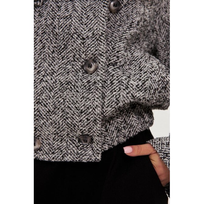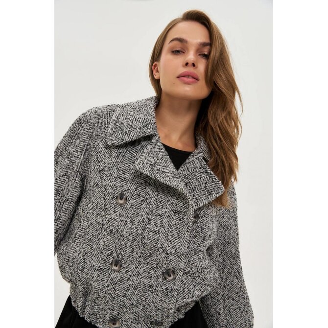 100% POLYESTER, PODŠÍVKA: 100% POLYESTER Tato dámská dvouřadá bunda se vyznačuje módním vzorem rybí kosti, který kombinuje odstíny šedé, bílé a černé. Volný střih zajišťuje pohodlí a volnost pohybu, zatímco délka do pasu zdůrazňuje postavu. S elegantním límcem a praktickými kapsami je ideální pro každodenní nošení. Knoflíky dodávají eleganci, zatímco dlouhé rukávy zaručují pohodlí i v chladnějších dnech. Bunda je vyrobena z měkké kabátoviny s přídavkem polyesteru a je podšitá pro odolnost a pohodlí. Absence kapuce zdůrazňuje minimalistický design. Ideální pro obchodní schůzky, procházky městem i večerní vycházky. Dobře se hodí ke klasickým džínům, látkovým kalhotám, pouzdrové sukni nebo šatům. Vynikající volba pro ležérní i elegantnější outfity, kde je styl a pohodlí klíčové.