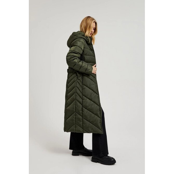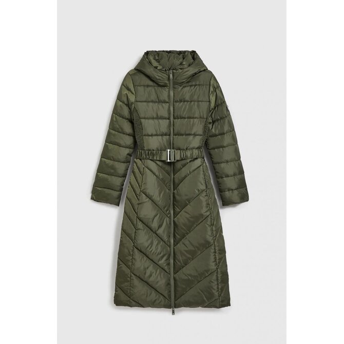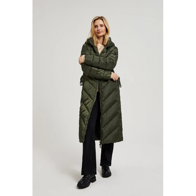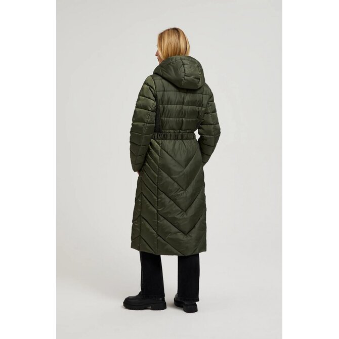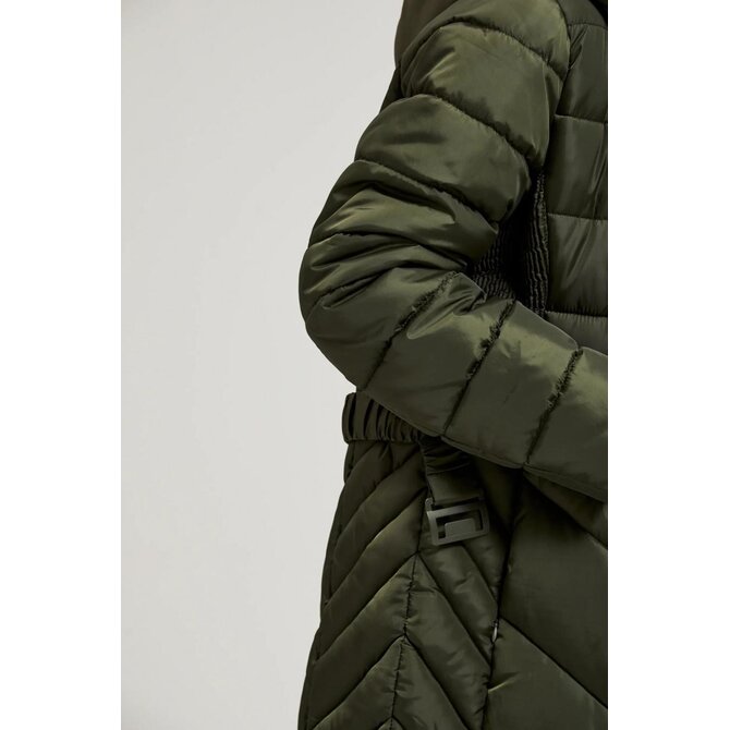 Prošívaná bunda s páskem, olivově zelená