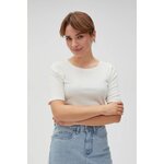 95% BAVLNA, 5% ELASTAN Krémová halenka je perfektním řešením pro každou ženu, která si cení pohodlí a stylu. Vyrobeno z vysoce kvalitní bavlny se strukturovaným žebrovaným vzorem, zajišťuje pohodlí při nošení a dokonalé přizpůsobení postavě. Díky krátkým rukávům a kulatému výstřihu je halenka extrémně univerzální a vhodná pro mnoho stylů. Tato krémová halenka je ideální pro mnoho různých příležitostí - každý den, do práce i na večerní výlety. Lze jej kombinovat s džínami, sukní nebo elegantními kalhotami. Díky svému klasickému designu bude dokonalým doplňkem šatníku každé ženy.