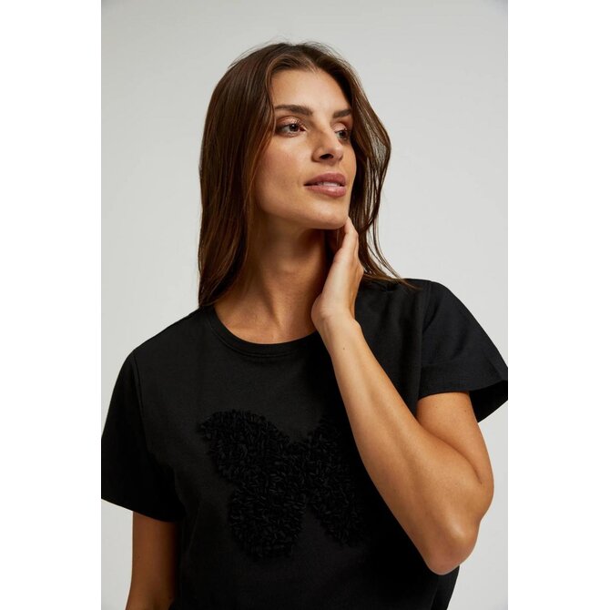 Bavlněné tričko s aplikací v černé barvě
