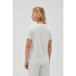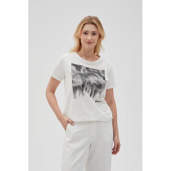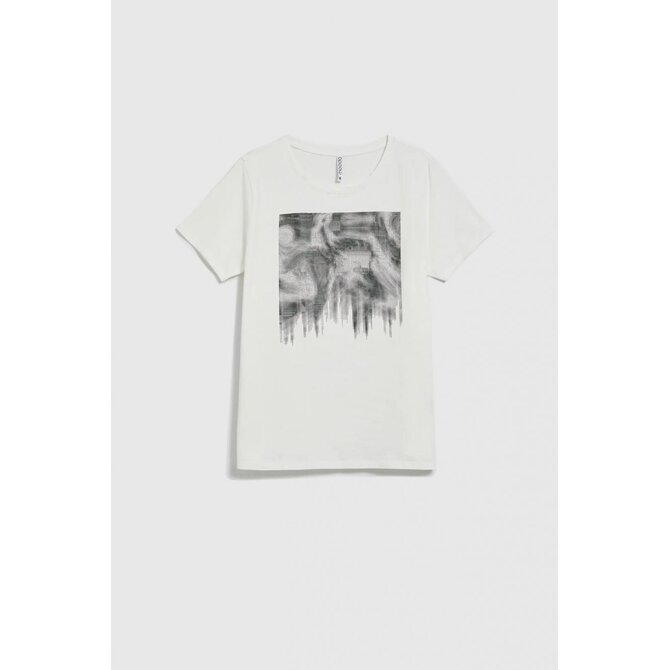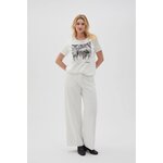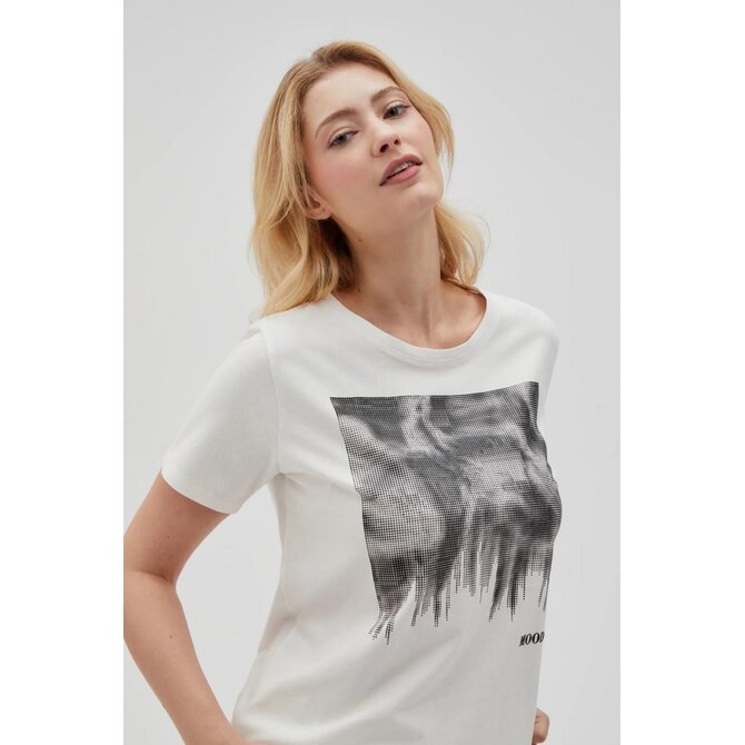 95% BAVLNA, 5% ELASTAN Halenka krémové barvy s potiskem, vyrobená z kvalitní bavlny. Má krátké rukávy a kulatý výstřih, který jí dodává klasický, mírně volný střih. Ideální pro mnoho příležitostí, jak každý den, tak pro setkání s přáteli. Skvěle se hodí k džínům, sukni i elegantním kalhotám. Dodejte svému outfitu punc elegance a pohodlí.